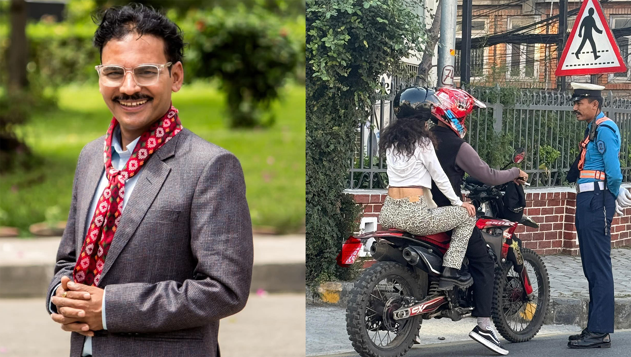 बाइकमा बस्ने दुवैजनाले हेलमेट लगाएका थिए । तर, पनि ट्राफिकले किन रोेकेको होला भन्दै उनले उक्त फोटो पोस्ट गरेका थिए ।