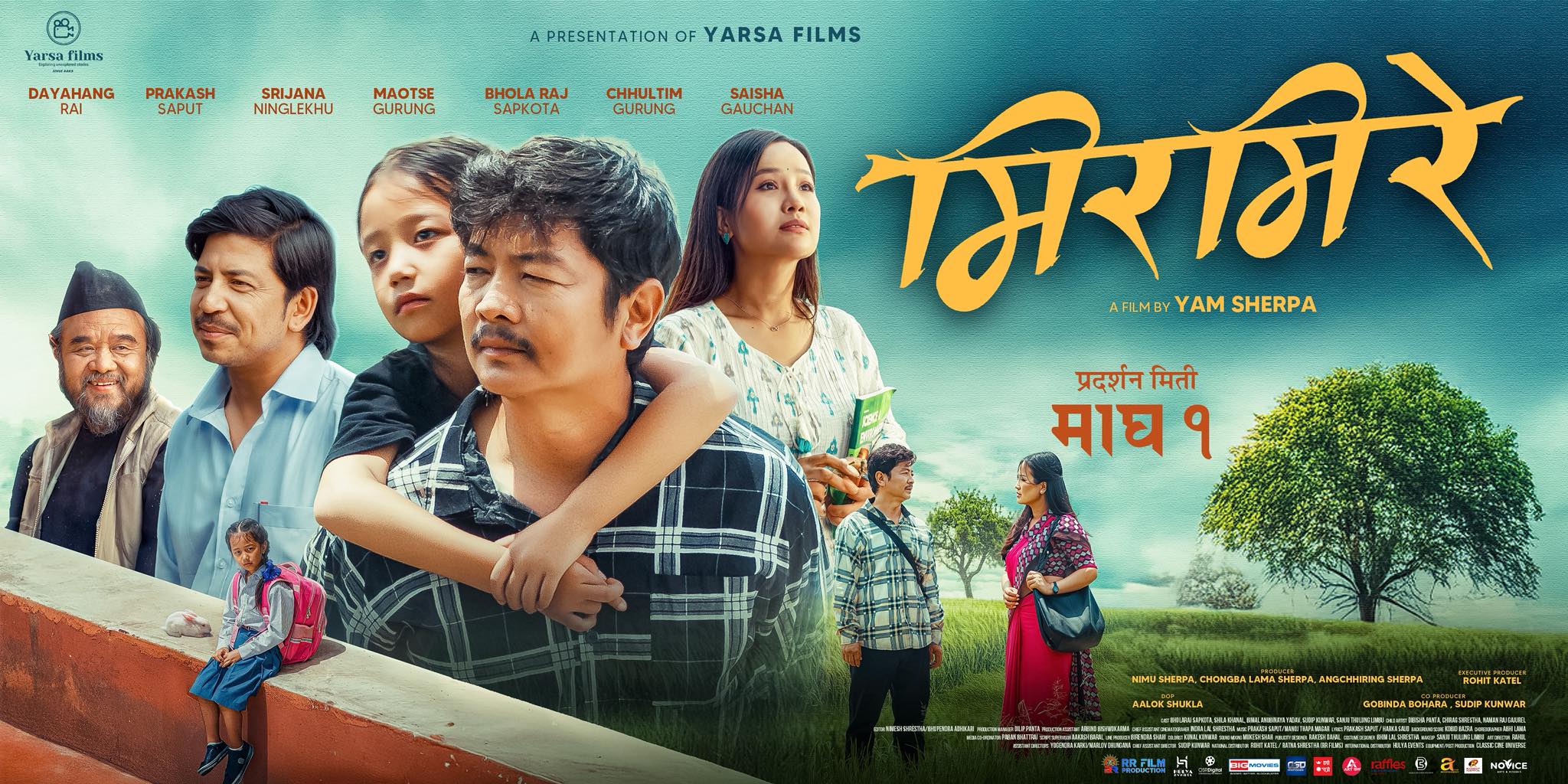 यस्तै पोस्टरमा कलाकार माओत्से गुरुङलाई ढाका टोपी लगाएको हँसिलो मुद्रामा देख्न सकिन्छ भने बाल कलाकार साइसा गौचन पनि पोस्टरमा अटाएकी छन् । पृष्ठभूमिमा देखिएका हरियाली डाँडाकाँडा र तल्लो भागमा रातो झोला बोकेर एक्लै बसेकी बालिका तथा खेतबारीमा हिँड्दै गरेका पात्रहरूले चलचित्रले गाउँको अर्गानिक कथा भन्ने पुष्टि गर्छ ।