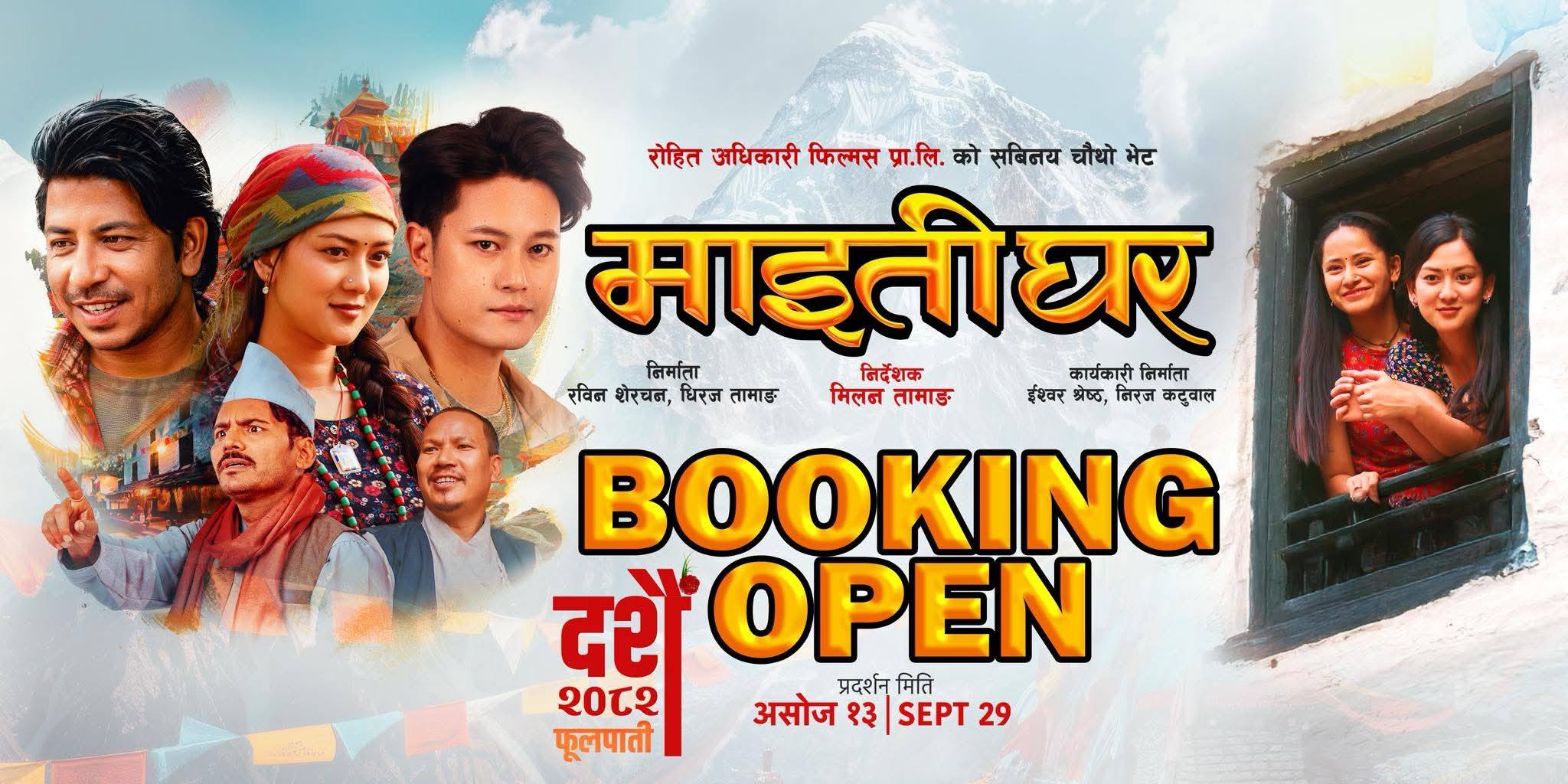 काठमाडौं । दशैंको बिदालाई लक्षित गर्दैै रिलिज हुन लागेका तीन नेपाली चलचित्र ‘बलिदान’, ‘माइतीघर’ र ‘हरिबहादुरको जुत्ता’को अग्रिम बुकिङ खुला भएको...